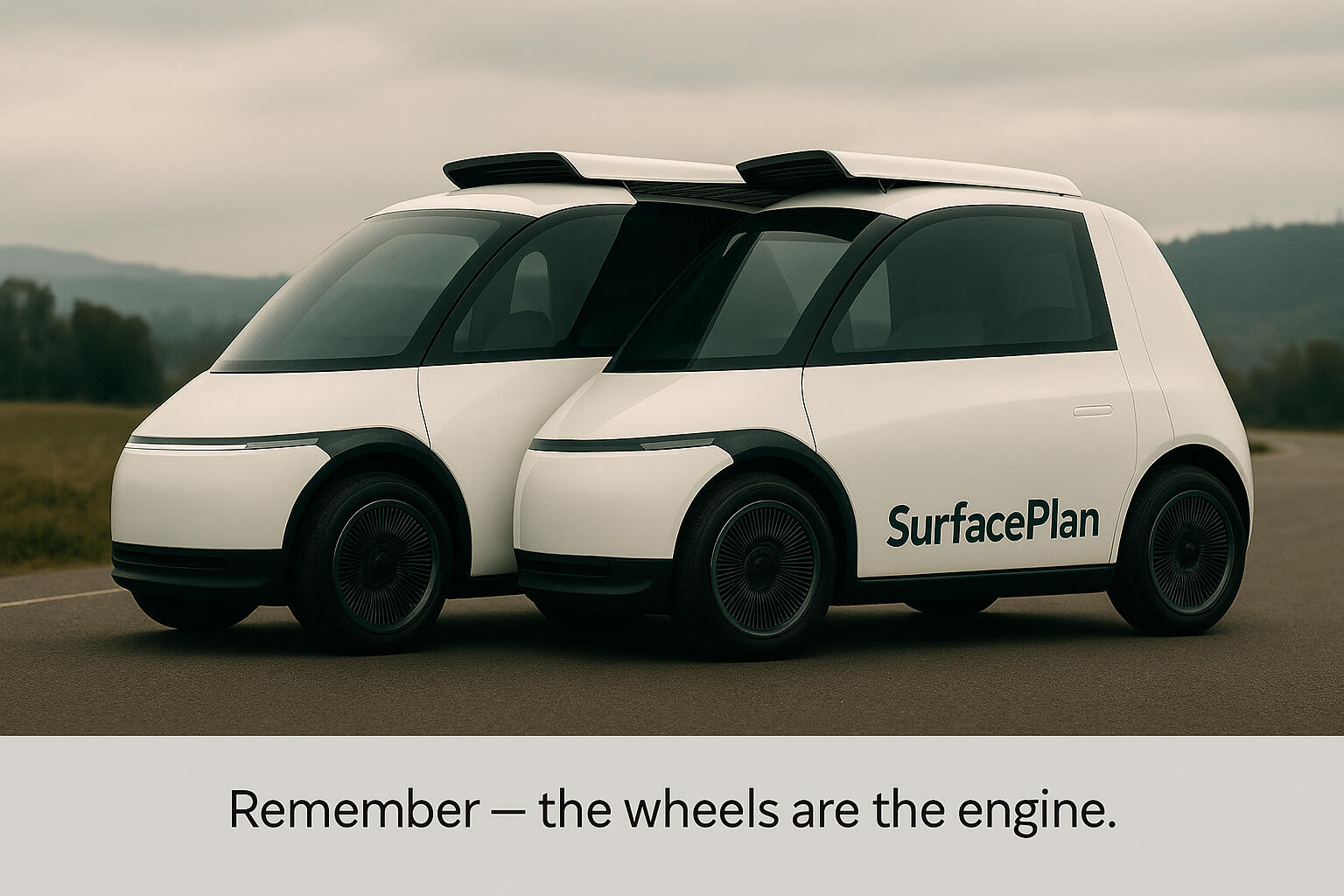 By dynamically forming propulsion at the contact patch, SurfacePlan replaces centralized torque transmission systems: removing driveshafts, differentials, and complex gear assemblies from conventional vehicle architecture. Propulsion shifts from the center of the vehicle to the surface interface itself, enabling radically simplified structures that can be lighter, more aerodynamic, and mechanically efficient.