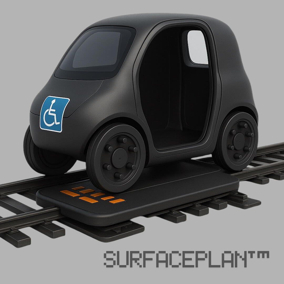 Inventor’s NoteWhen I first designed the SurfacePlan wheel, I imagined many potential uses. But light rail wasn’t on my radar, and while I considered EVs, I didn’t recognize the unique charging advantages the SurfacePlan design offers.Both of these possibilities were pointed out almost immediately by the engineering community. And they may be right: combining ultra-light rail with the SurfacePlan wheel could be the first best use of this innovation. It makes a ton of sense because SurfacePlan starts with a new kind of wheel, one not tied to pneumatics, but to direct actuators. That makes the system far more flexible: it can be designed for both off-rail mobility and ultra-light rail efficiency.On rail, the advantages are dramatic. Rails provide a smooth, consistent environment - the perfect proving ground for actuated propulsion. Energy use drops to a fraction of conventional vehicles, because there’s no heavy drivetrain and rolling resistance is extremely low. Even shallow guide inserts in existing streets can deliver rail-like performance at a fraction of the cost and disruption of traditional light rail.Off rail, the same pod is still effective. Actuators handle steering with the help of AI, keeping vehicles stable and nimble. That makes SurfacePlan practical for the “last mile,” it can leave the guideway to reach neighborhoods, campuses, or door-to-door destinations. Charging pads can even be built into guided on-ramps, so vehicles gain meaningful range while waiting to enter highways.In short: ultra-light rails deliver unmatched efficiency, off-rail operation delivers flexibility, and together they unlock a transportation system that’s both practical and transformative.